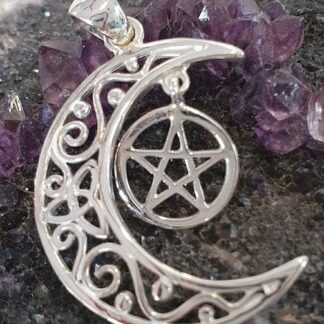 Pendentif croissant de lune avec améthyste et étoile avec pierre de lune